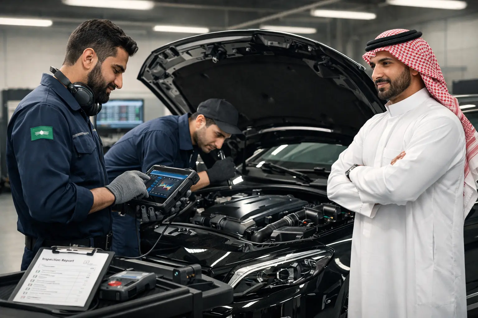 مهندسين وفنيين خبراء في فحص واختيار السيارات بعناية